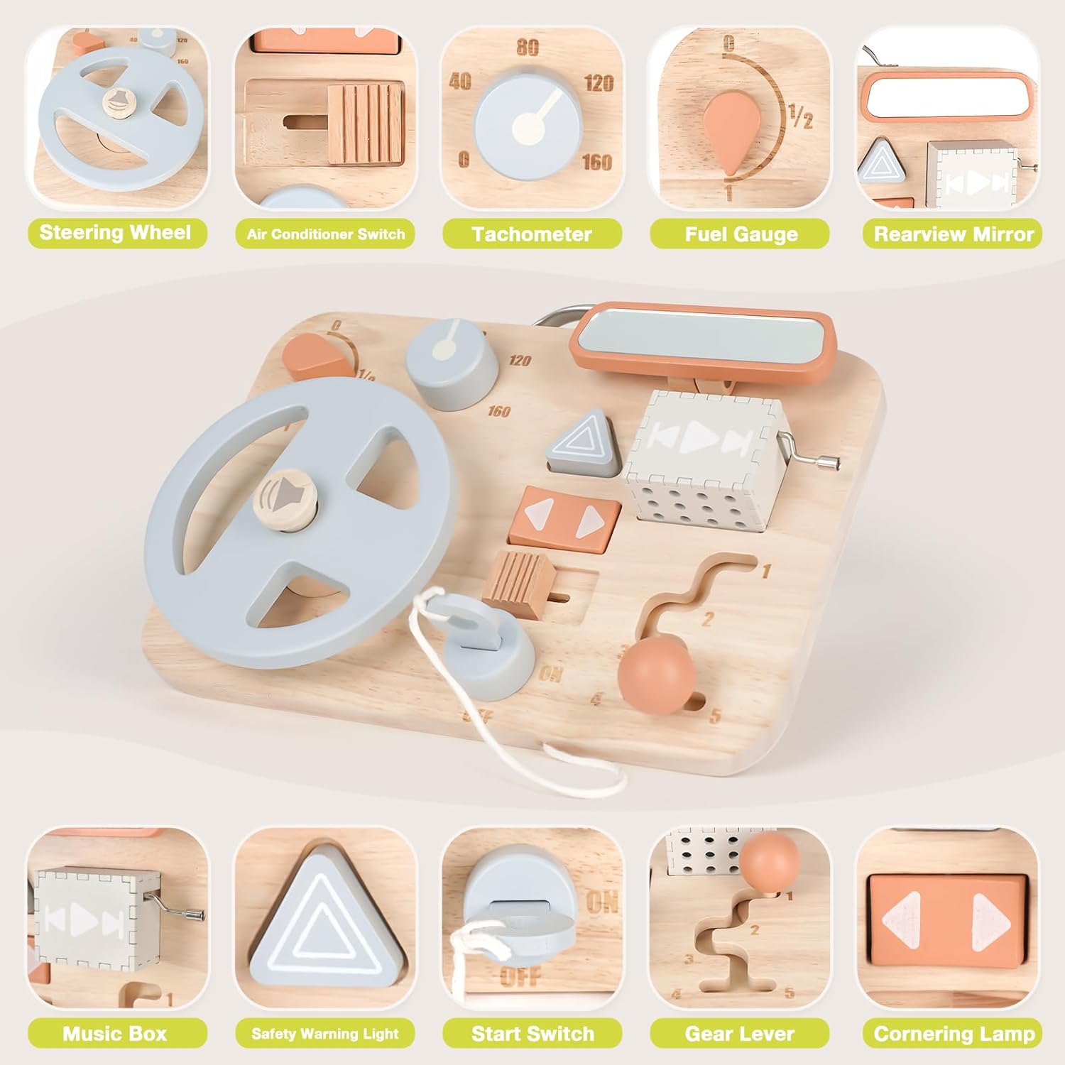 - Interactive Dashboard: Mimics a real car dashboard to boost fine & gross motor skills and logical thinking.